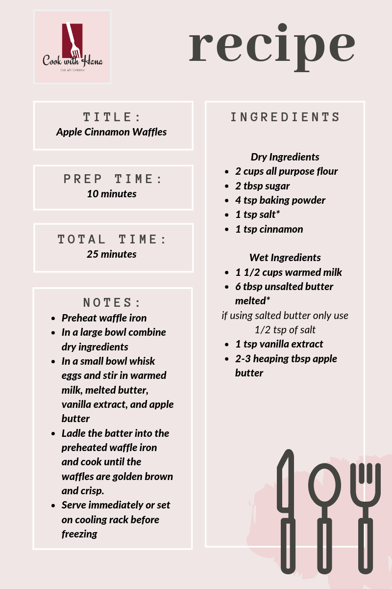 Growing up waffles were a Special Occasion. Christmas Day and maybe Thanksgiving, but with this recipe for Apple Cinnamon Waffles you don’t have to wait for a holiday to make them. Bust out the waffle iron this weekend and enjoy not only how delicious these waffles are, but how easy they are to make and clean up!